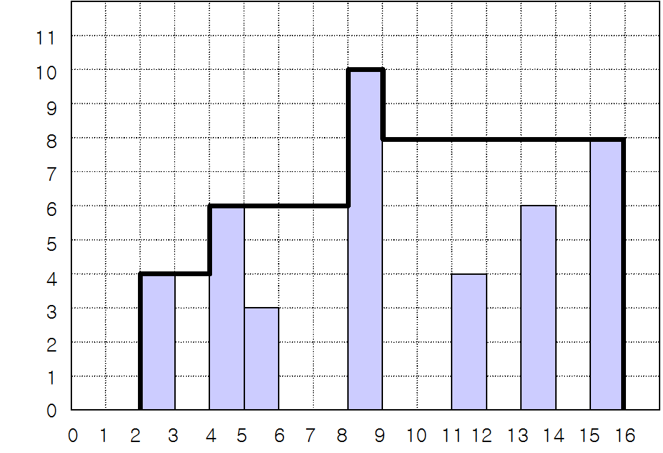 # 최대 높이 전까지 이동하며(hightest_idx) 현재 기둥의 높이보다 다음 기둥의 높이가 더 높으면