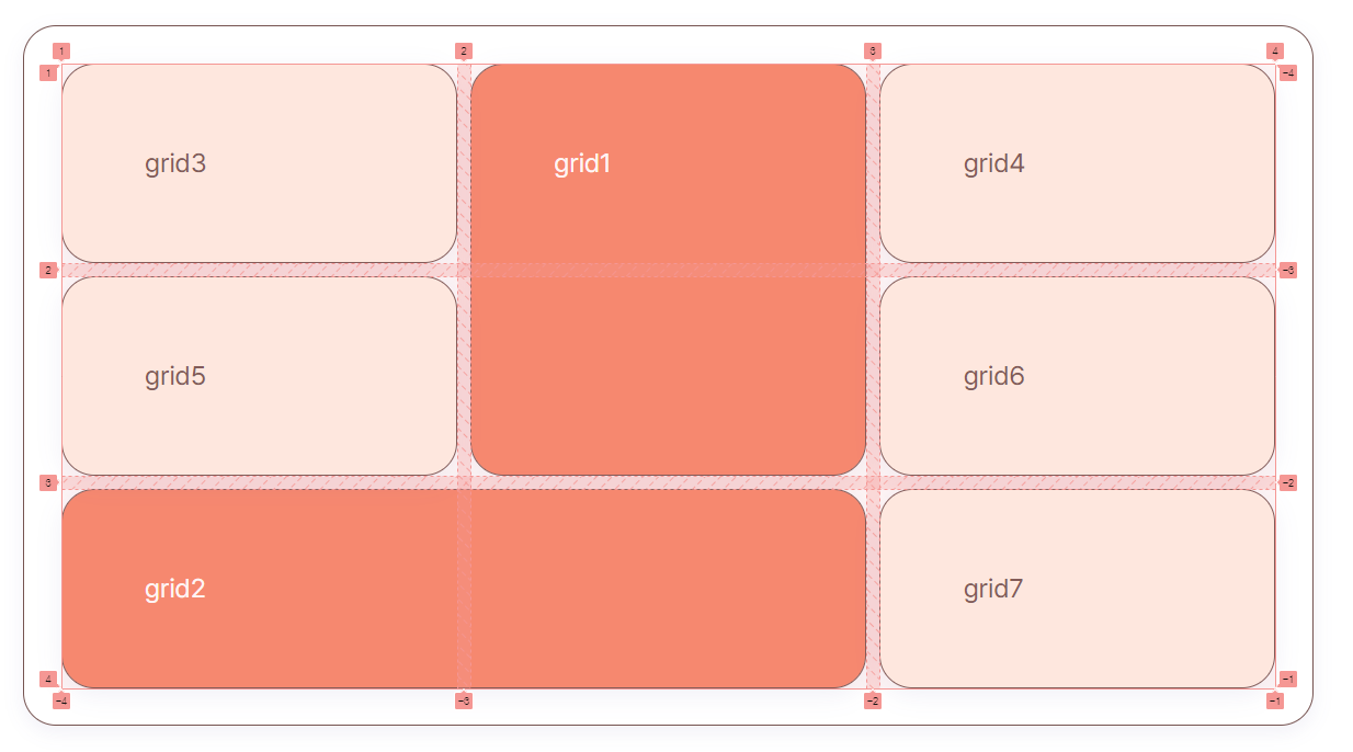 하지만 너무 길고 가독성도 좋지 않으므로 grid-column & grid-row 속성을 사용해 축약형으로 쓰는 것이 좋다.