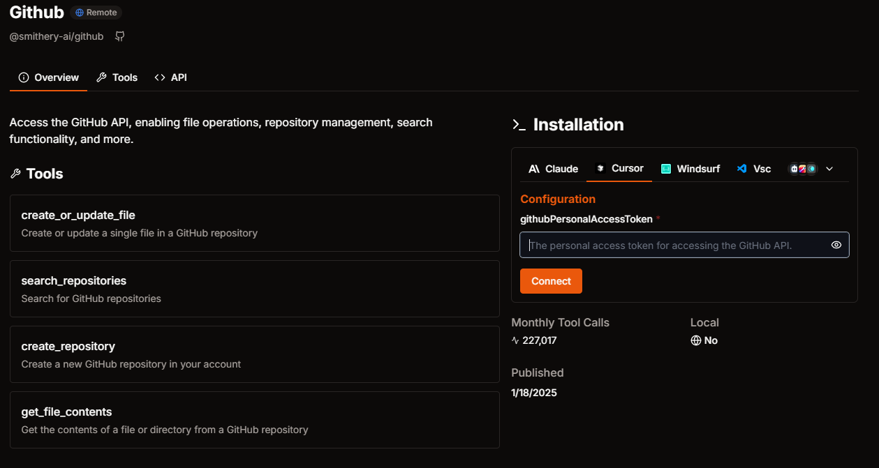 Tools에는 어떤 명령을 내릴 수 있는지 간단히 안내가 되어있다. 이슈 생성, 레포지토리 내 코드 검색, PR, 리뷰 관련 등...