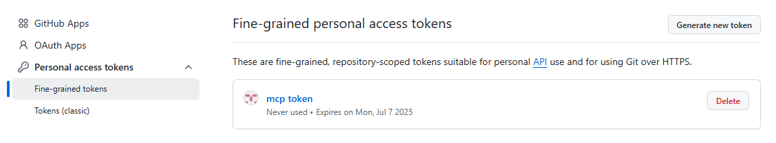 settings -> Developer settings-> Personal access tokens-> Fine grained tokens-> Generate new token