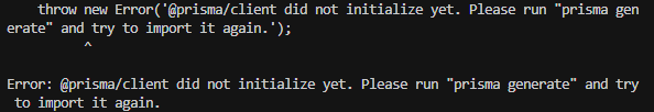 throw new Error('@prisma/client did not initialize yet. Please run "prisma generate" and try to import it again.');